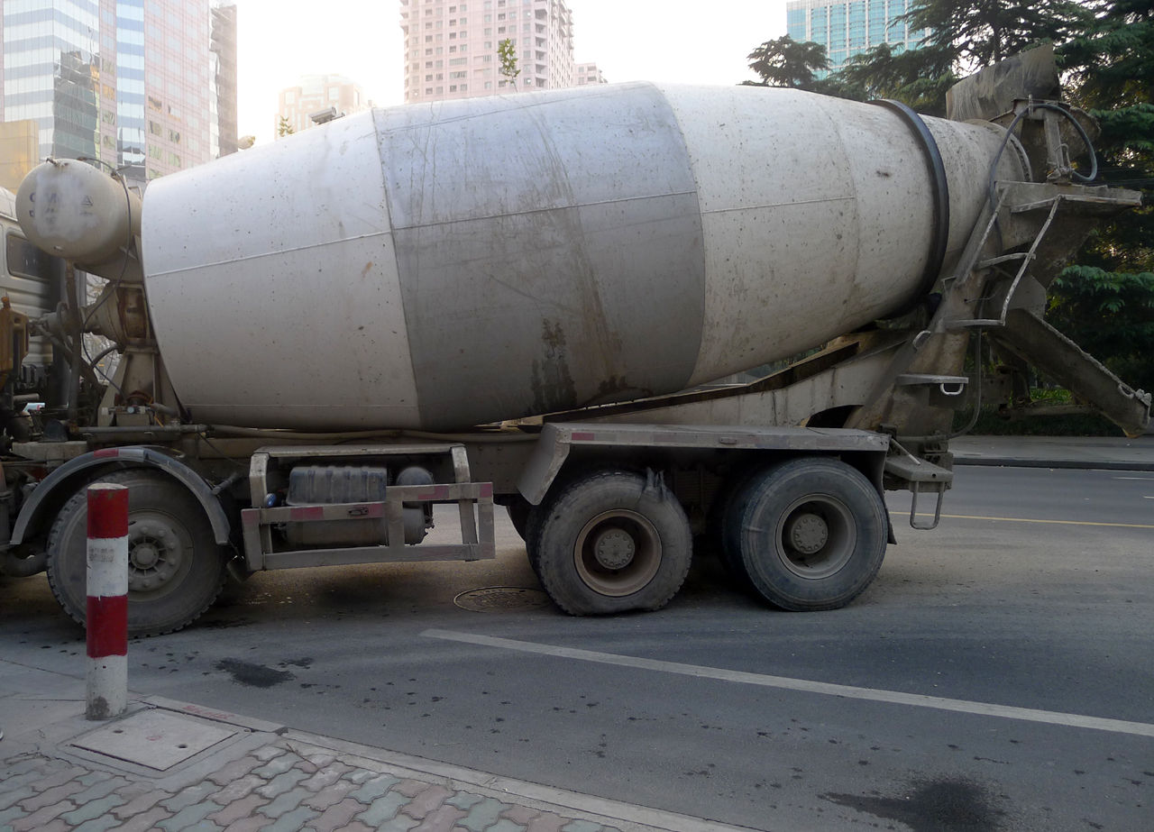 日本で見かけるより、大きな大型ミキサー車が背後からやってきて、右側から(日本と違い歩行者の立場は弱いので)行く手を阻まれました。工事現場に入ろうとする車です。