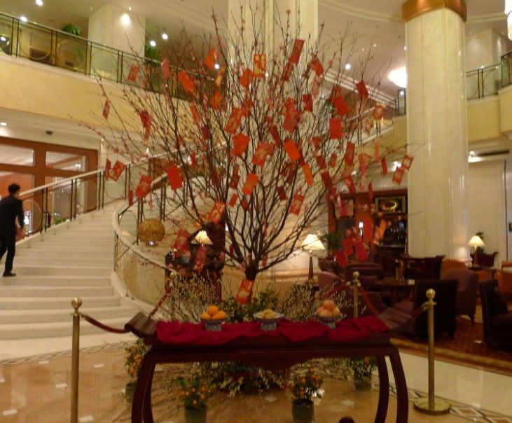 旧正月を迎えたばかりなので、まだ正月飾りがホテル中に飾られていました。
