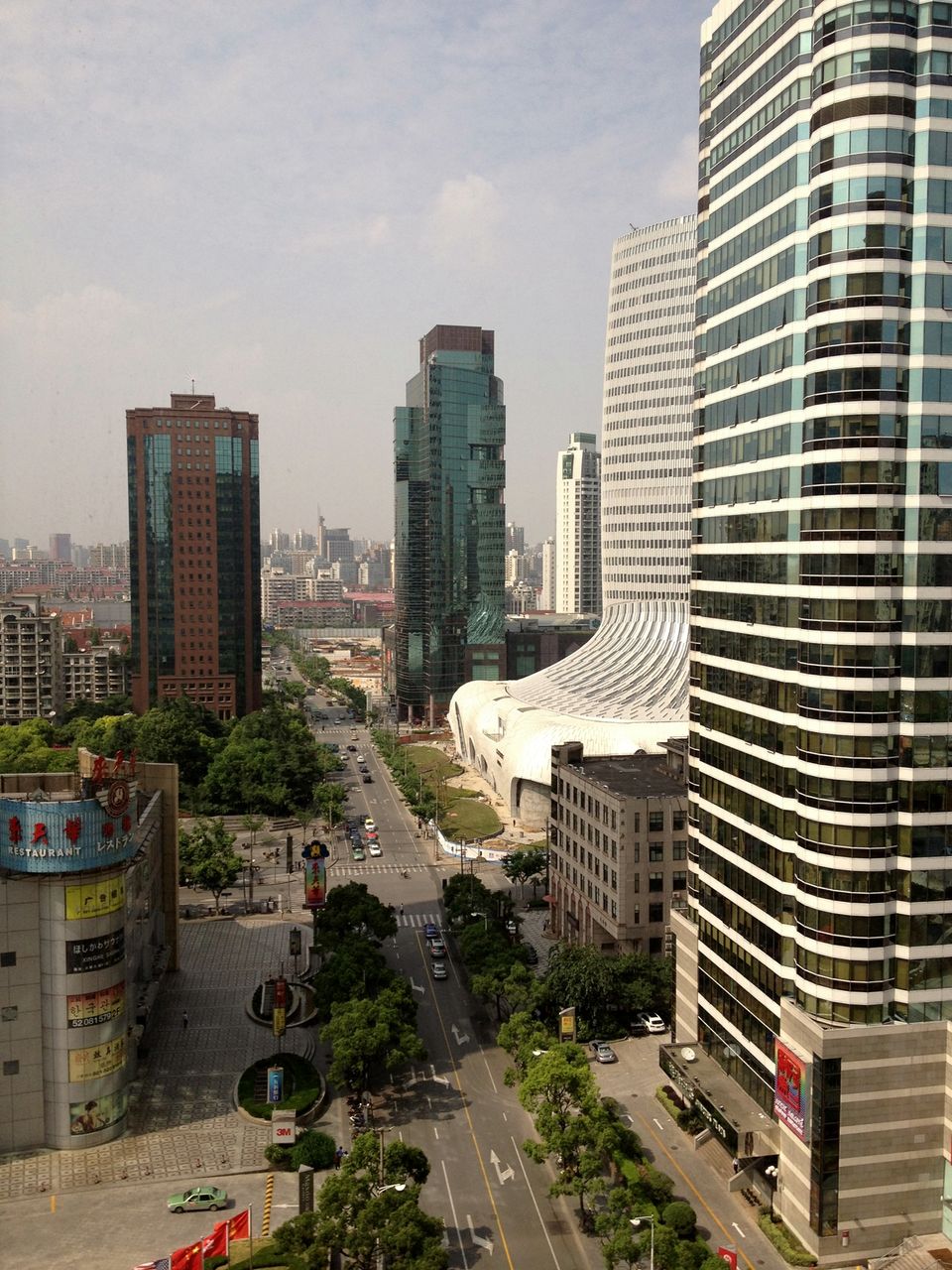 部屋から見た、ホテル正面の景色。例の工事中のビル、どんどん存在感を増しています。