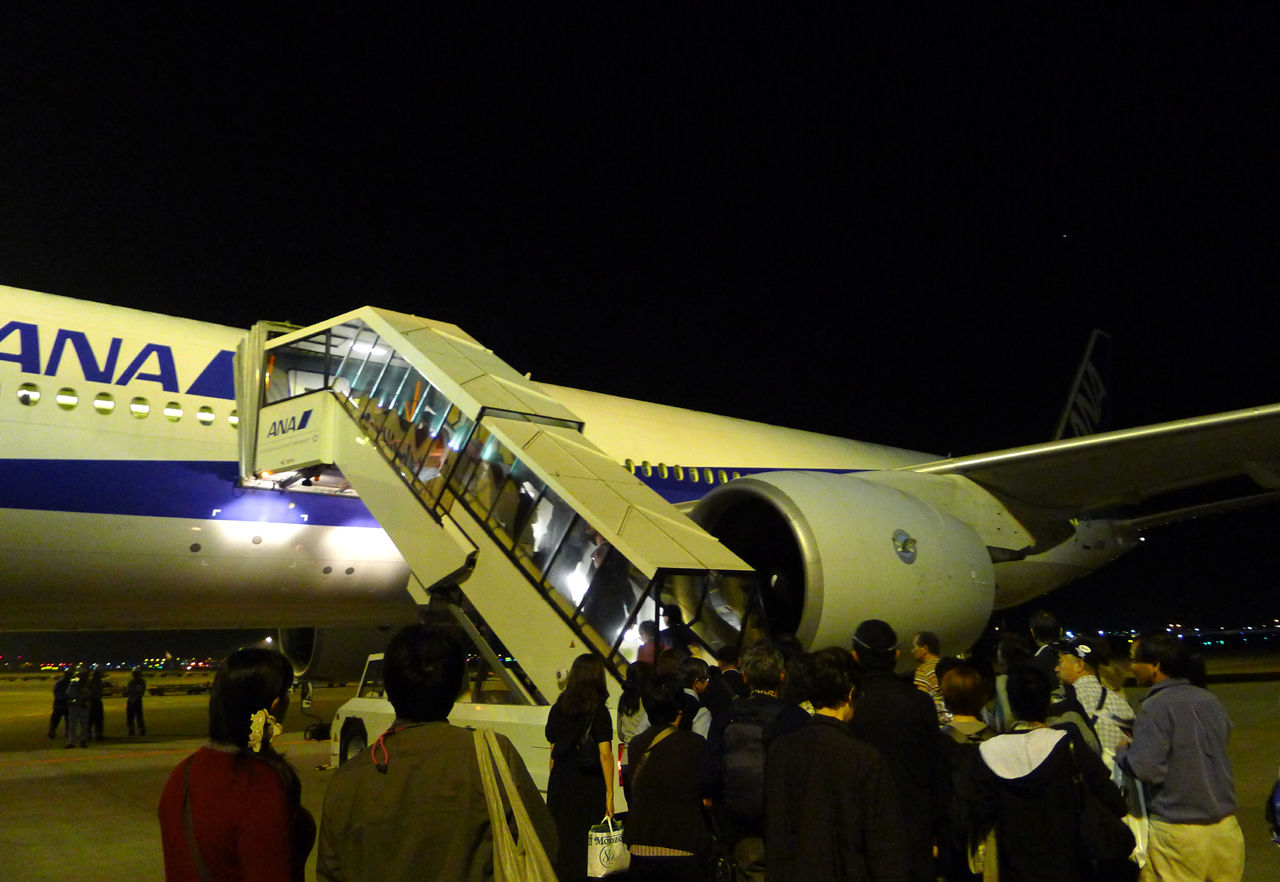 羽田発の便は満席だったので、成田発の全日空919便(9時40分発)を利用します。機種はB777-200型機。